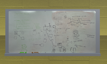 Sometimes in life, the creative process is a horrid thing that drags on and on and makes you feel horrid. Sometimes you gotta let out some frustration in a silly silly way. Nothing happens to the board when the marker hits it, the marker simply falls to the ground and you pick it back up.